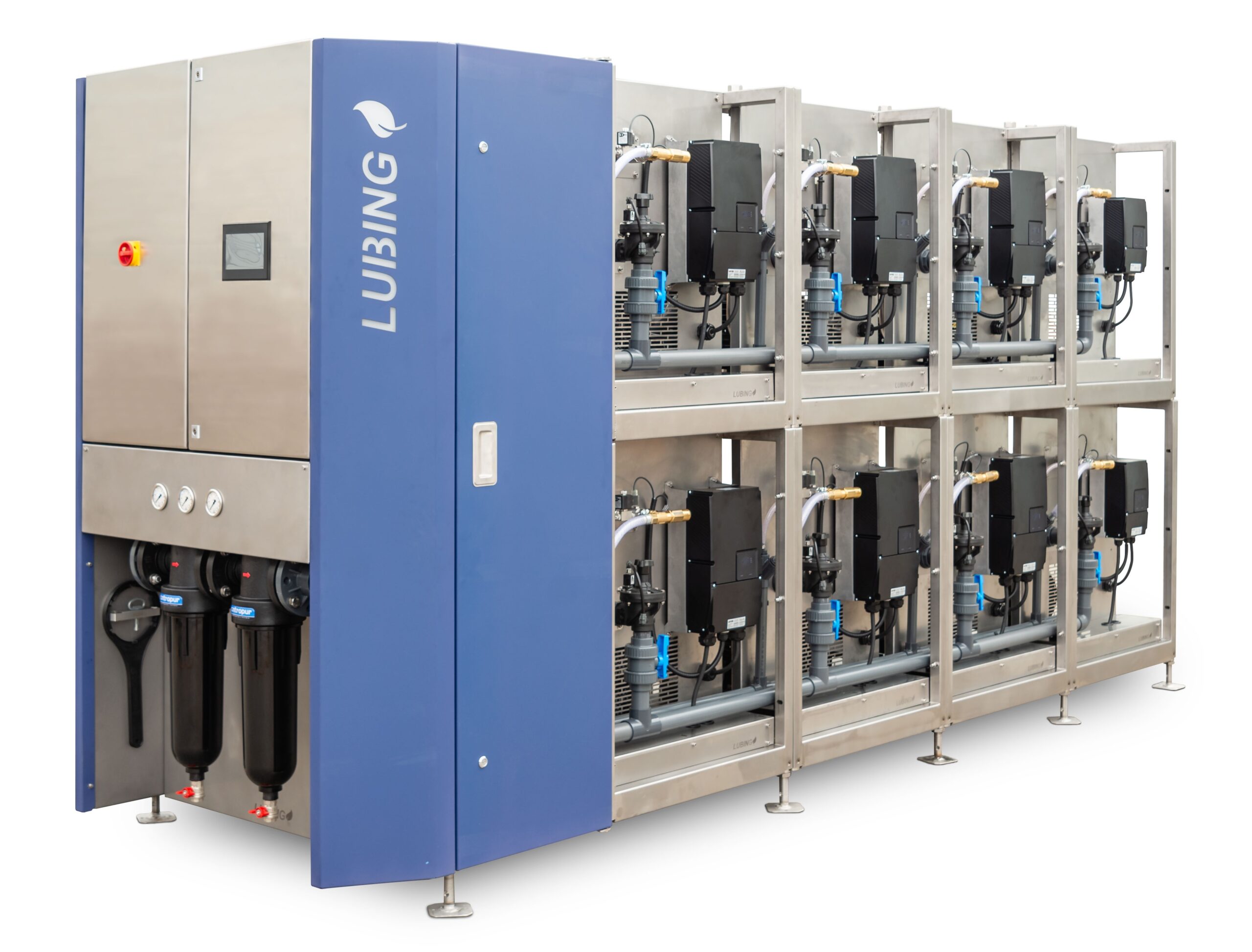 Optimal cooling performance and homogeneous distribution of moisture is provided by the 1015 psi (70 bar) water pressure and special high-pressure nozzles: To achieve rapid evaporation of the water mist and gain excellent cooling performance without wetting the foliage, droplets must be smaller than 20 microns. The LUBING high-pressure nozzles produce a droplet size of only 5 microns